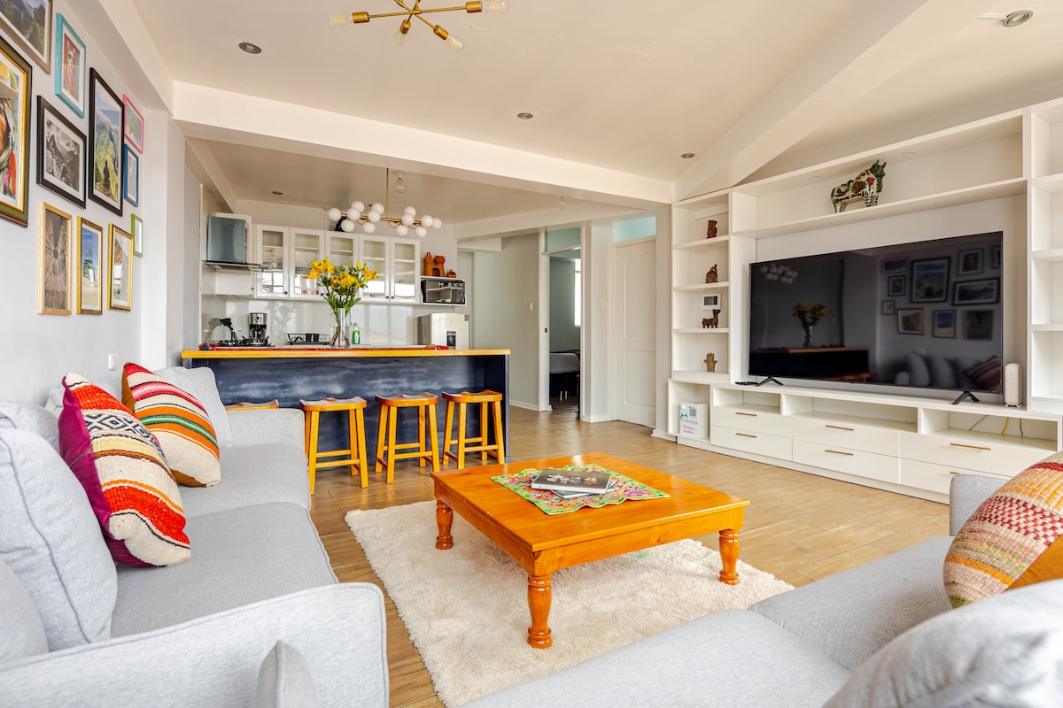Bright 6th Floor Retreat with Panoramic Views, KING Bed & Prime Location Experience the ultimate in comfort and convenience in this spacious (1600 Feet) , well-lit apartment located walking distance to: - Top-rated restaurants and cafes - Grocery shops and drugstore - The only mall in town - Prime neighborhood with vibrant atmosphere in a highly sought-after neighborhood - New and modern building with elevator - Approx. 10 minutes, in light traffic, to airport or Cusco historic center.