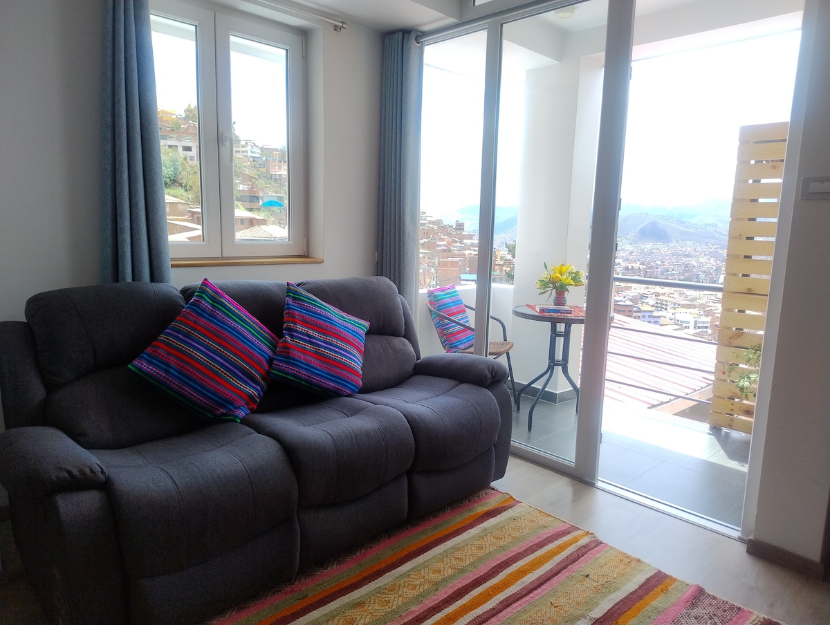 A fully furnished modern studio with all the comforts and privacy of home, whilst offering a panoramic view of the beautiful Cusco. The unit is fully-equipped with soundproof doors and windows, heavily-insulated walls for added warmth, blackout curtains, consistent gas-powered hot water, strong Wi-Fi and smart TV (Netflix included) to ensure a quality living experience. It takes only 10-15 minutes’ walk to the historic centre. The indoor heating system is also available at an additional cost.