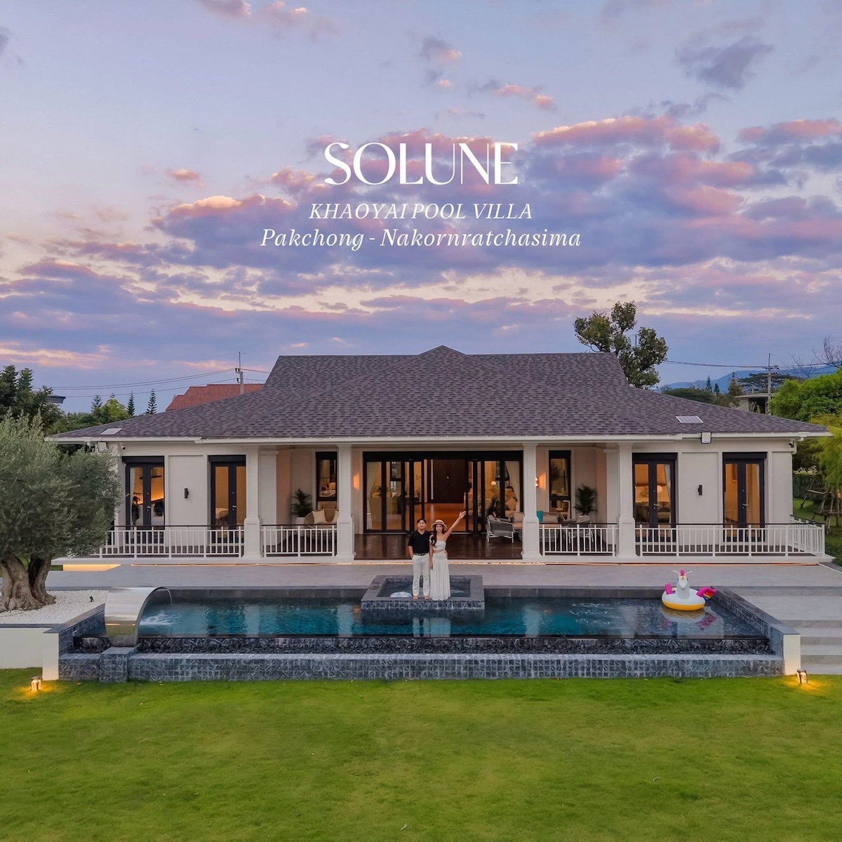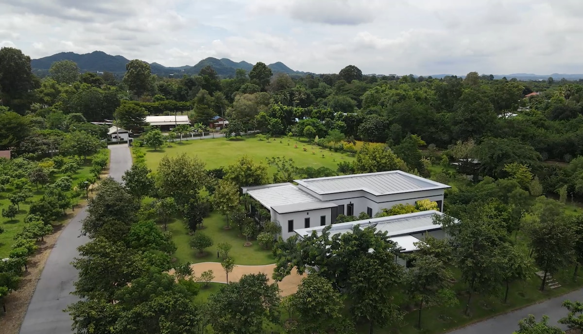 A stunning modern family-friendly house surrounded by beautiful scenery of an on-site farm. The property is private, peaceful, and relaxing, so it's perfect for a quiet getaway from city life and a family vacation. Located in the Pak Chong district, the property is within proximity of top local attractions: - 10 mins from Bonanza Khao Yai - 15 mins from Farm Chokchai - 20 mins from Thongsomboon Club - 20 mins from Khao Yai National Park