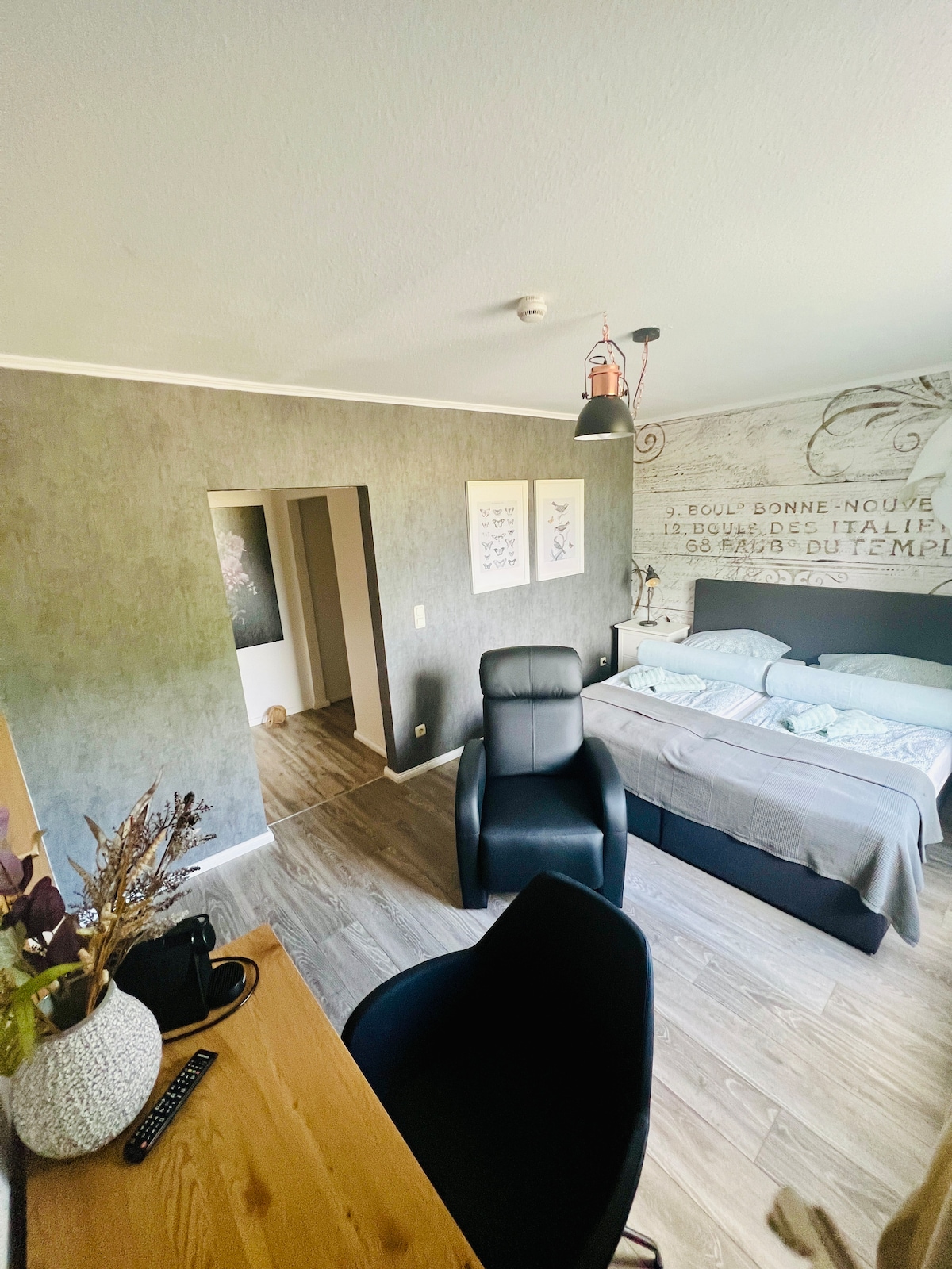 Einen Teil unseres Hauses, in dem wir als Familie leben, haben wir als Gästewohnung umfunktioniert. Diese Wohnung für Nichtraucher ist separater Teil unseres Hauses. Es liegt am Rande des Natur-und Landschaftsschutzgebietes Wakenitzniederung, ideal für 2 bis 3 Personen. Der große Wohnraum ist mit einem Schlafsofa für 2 Personen und einem weiteren, abgeteilten Einzelbett ausgestattet. Die Küche mit Essplatz liegt in einem zweiten Raum, vor dem eigenen Eingang eine kleine sonnige Terasse.