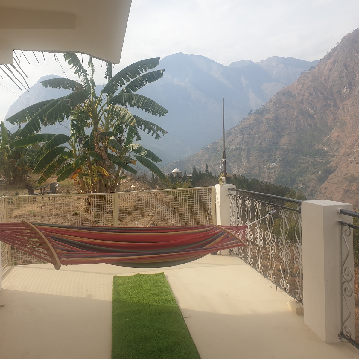 Away from the hustle-bustle of the town, enjoy a comfy stay in our homestay, which is in the forest but still town, hospital and bus stand are 5 minutes drive away from the property. Sit and gaze at the stunning view of Kailash range. With spacious luxury bedroom cum living area, private bathroom, kitchen, lawn and terrace, there's space to comfortably accommodation of 4 people. Perfect place for work from home.