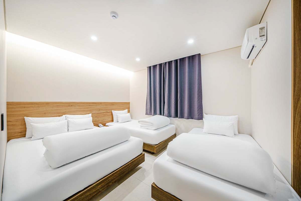 우리 숙소는 매일 청소와 소독으로 깨끗을 유지하며, 전주의 관광지와 유명한 명소로의 이동이 편리하며 넓은 주차장을 제공하는 호텔입니다. 인근에는 스타벅스와 맥도날드, 편의점 등이 있어 편리하게 이용 가능합니다. 더블침대 2개로 구성된 넓은 공간과 최신식 시설은 가족이 함께 이용하기에 최적인데, 아이들을 위한 용품도 구비되어 있어 편안한 가족 여행을 즐길 수 있습니다.