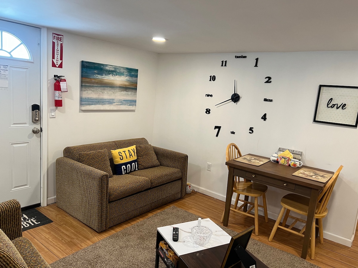 Fully private apartment ...private bathroom, private bedroom with queen size bed, private living room with 2 couches & 1 futon with a separate private entrance, private kitchen (please note dishwasher is inoperative & not listed as an added amenity). Equipped with modern decor, ROKU smart TV, wifi, backyard patio & inground pool. Pool is seasonal & open from Memorial Day until end of September. Pool is limited to Airbnb guests listed on reservation only. Pool hours are 8am-8pm.