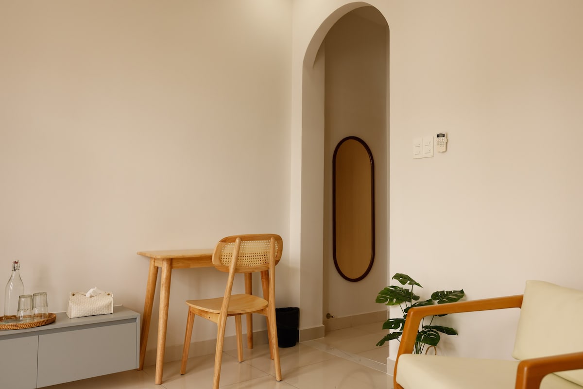 Studio apartment with unique design located in a lovely alley in Saigon Center. The studio is located on the 2nd floor of a townhouse, of which the 1st floor is the lovely BeanThere cafe. It only takes a few minutes to reach attractions and nightlife activities. Besides, there is also a kitchen to cook basic meals. One breakfast (01 food and 01 drink) / guest / night in Beanthere cafe. We offer free housekeeping for bookings longer than 4 nights. If needed, you can notify 1 day in advance.