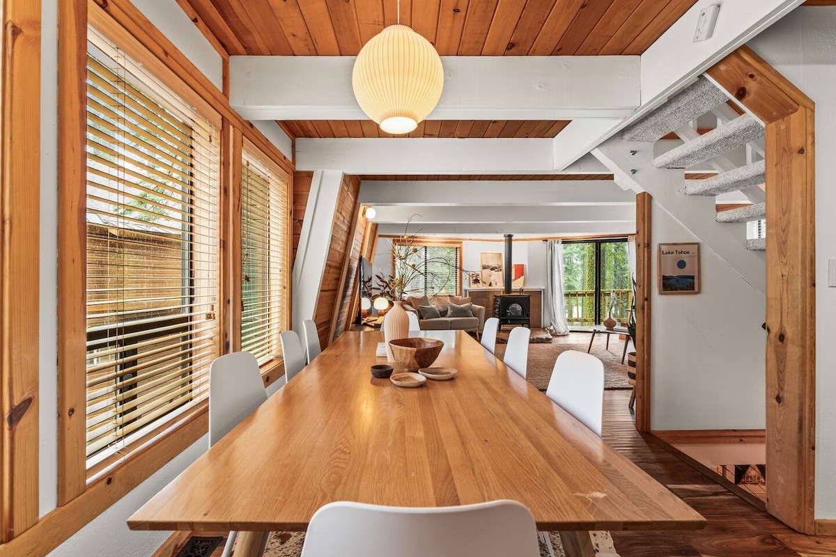 A cozy Tahoe A-frame nestled in Homewood, CA. Updated 1965 A-Frame on the magical West Shore in Lake Tahoe. Filtered lake views and a private pier with lake access within a short walk! Open concept living with the primary bedroom/bathroom on the first floor with access to the back deck and hot tub. Please read our house rules and cancellation policy before booking. If you would like protect your trip for covered reasons outside of Airbnb’s policies, we recommend external trip insurance.