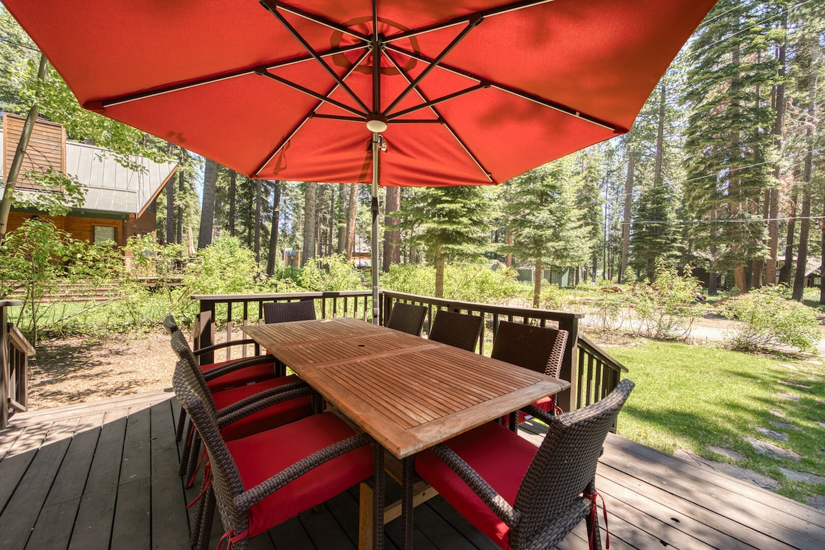 Enjoy your stay at our quiet Homewood cabin on a small stream in an excellent location near walking/hiking/biking trails. Great for 2 couples with 1-bedroom downstairs (queen bed) & a loft upstairs w/queen bed & 2 futons. Enjoy coffee on 1 of the 2 two decks w/mountain views or sit by the cozy gas fireplace. Ski @ Homewood, Squaw or Alpine—the shuttles are nearby. A beach is at the bottom of the hill, & many popular restaurants & bars are nearby. We have hi speed wifi & a TV downstairs.