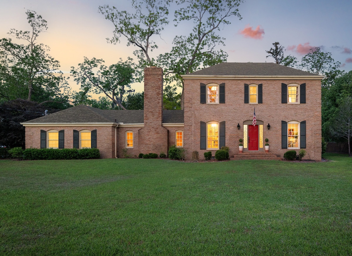 Welcome to your 3000sqft Southern Comfort home and the gateway to the Okefenokee Park Adventures. Meal prep in a fully stocked island kitchen with stainless steel Whirlpool electric appliances. Enjoy a large private backyard patio ready for a briquette BBQ. The sunroom has a wet bar and a regulation slate pool table. The dining room seats 8 in front of the wood-burning fireplace. The neighborhood is scattered with antebellum architecture and towering pines. You are minutes from the city center