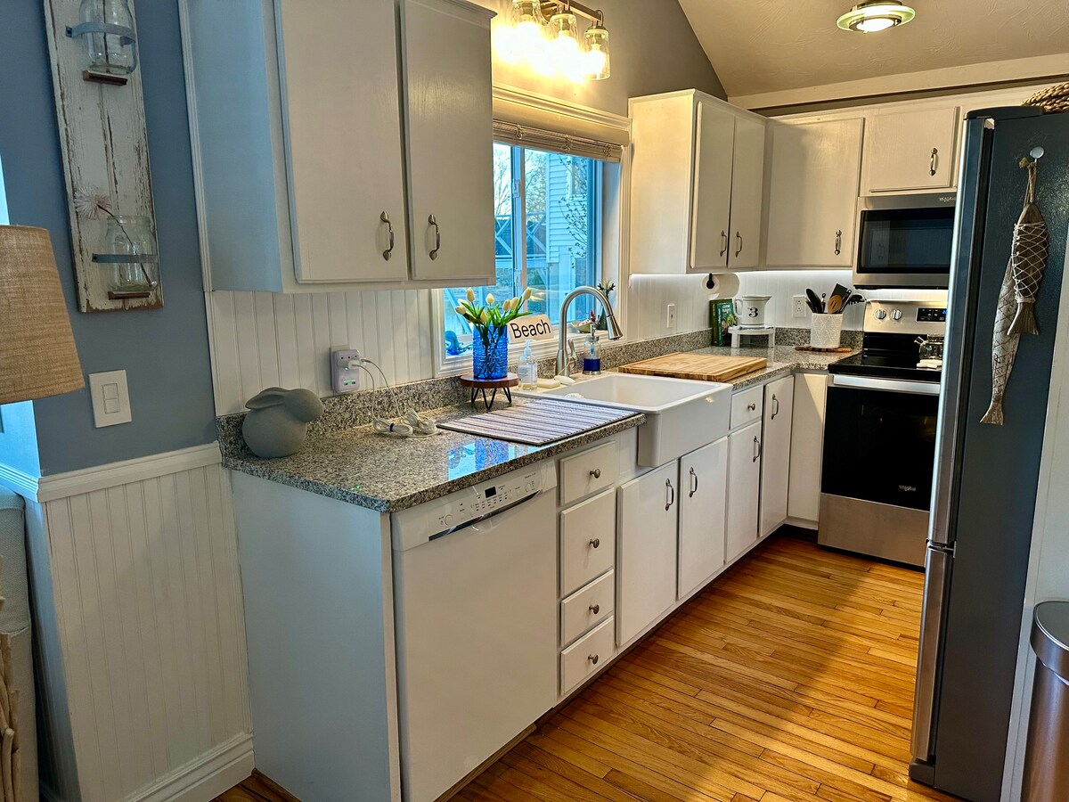 Relax with family and friends at this waterfront glass-front beach cottage—your new favorite hideaway. Enjoy 2 bedrooms with new Sealy queen beds, a queen Lazy Boy sleeper sofa in the living room, vaulted ceilings, a full kitchen with coffee bar, and a washer and dryer. Take in views of Crab Cove with 2 kayaks and a canoe, or unwind under the power awning and a comfortable table for 6. Includes fire table, Adirondack chairs, and more. Just 8 miles from Cape Cod—your perfect getaway awaits!