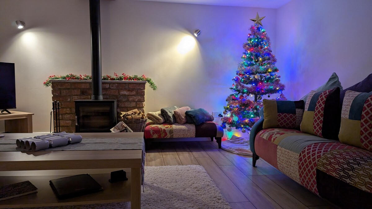 Warm, comfortable house in private woodland location. 2 acres of garden to enjoy. Sitting room, dining room ,3 bedrooms , 2 bathrooms, cloakroom with WC. There is NO KITCHEN. Large off road parking area with wide double gate access, car essential to enjoy this stunning area. NEW for 2025 Outdoor summerhouse Kitchen/Dining/ Music /Aga Heated space for larger groups and longer stays who wish to self cater. This is an optional extra £20 per night if required bookable and payable to host on arrival