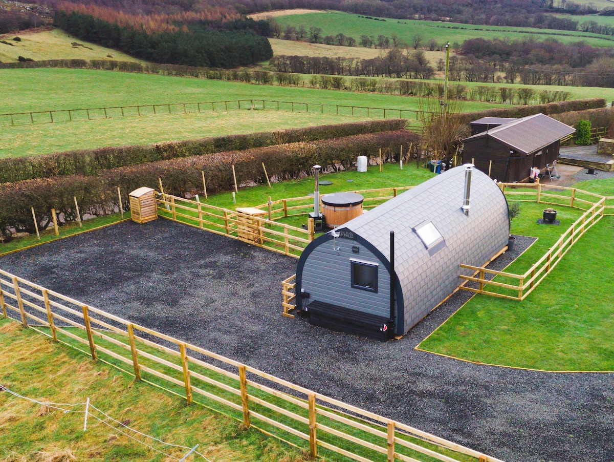 This stylish Pod is perfectly positioned above Edlingham Vale, with the Simonside hills beyond. Deep in the heart of North Northumberland, amenities in Alnwick and activities are just a 10 minute drive away. Next to the Pod, there is parking for 2 cars. Our Pod overlooks the hilltop Farm Steading of Overthwarts, giving panoramic views of the countryside. With your own private gated entrance, you can come and go as you please or enjoy the views from the comfort of the wood fired Kirami hot tub.