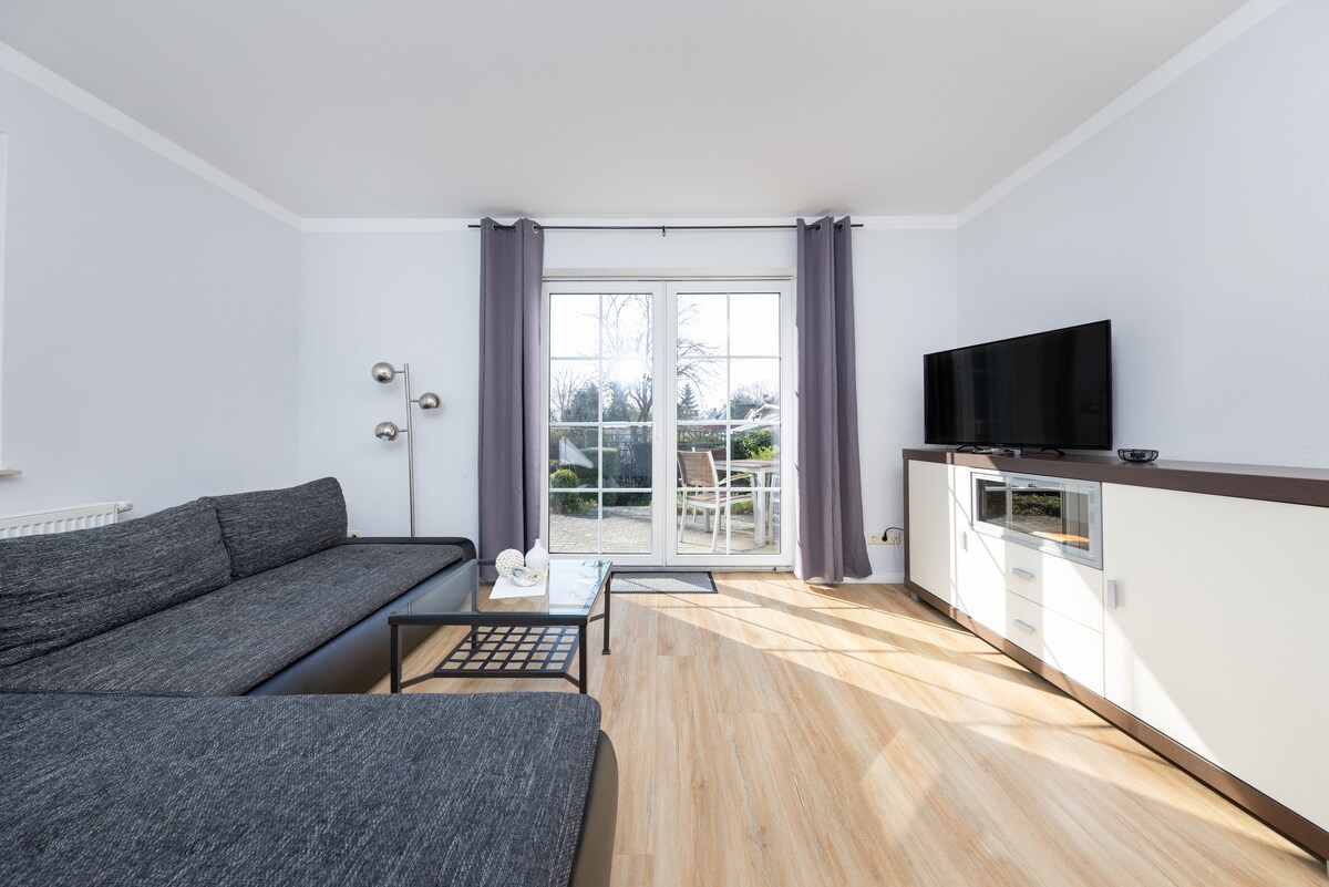 Looking for a spacious and quiet place for families or friends? This 93 m² ground-floor apartment offers a bright living space, private entrance , parking and a large terrace with BBQ. The ferry is just 10 minutes away - perfect for exploring the region. → Family-friendly + toys → 5 beds + bunk bed → Fully equipped kitchen → Contactless check-in Optional: Dog €15/night