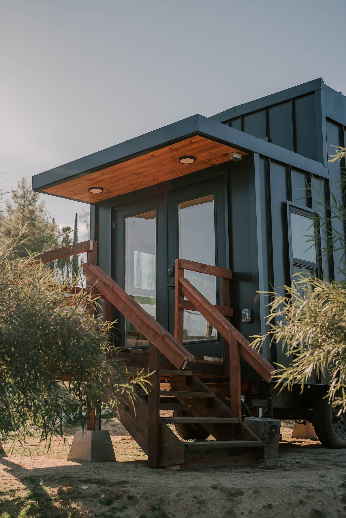 The Overlook sits perched above an untouched valley that stretches into textured hills and horizon beyond. Here, your tiny house awaits. Open the double doors and find all you need. A cantilevered bed above couch, 10’ kitchen counter, bathroom with fully tiled rain-shower and composting toilet, dining/work nook, and outdoor barbecue/seating area. Come step away. Reconnect. Cook. Read. Write. Lounge. Think. Come discover a slightly different way of doing things. Welcome to The Overlook.