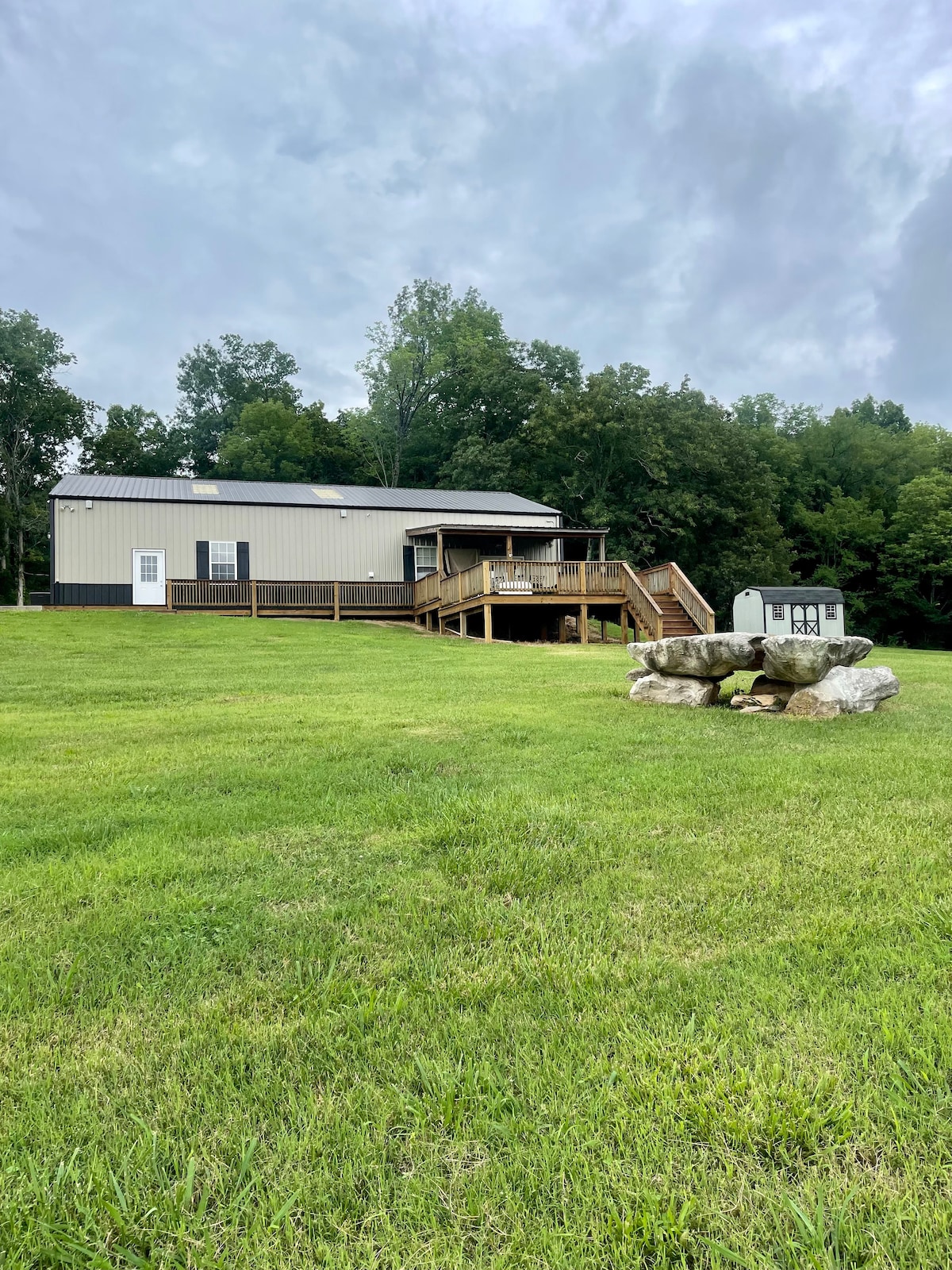 On The Rocks Farm is 81 acres nestled in the middle of Kentucky's beautiful rolling hills leaving you a relaxing view of Kentucky's wildlife. You won’t forget the peacefulness of this rustic destination, wether you're looking for a romantic solitude or a family/friends getaway. You can utilize the large garage to cover your Corvettes/hotrods or the spacious drive for a camper or RV. The property offers all amenities to cover all needs. Including and not limited to all handicap necessities..