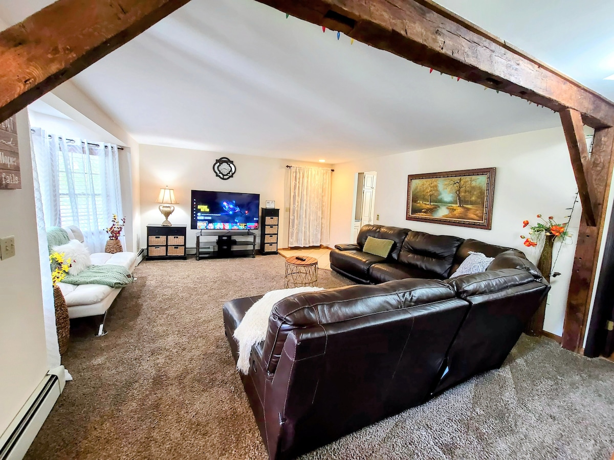 Private 1,600 s.f. lower level w/ private entrance, bedroom & full bath, large couch & queen air mattress. Relax on a working sheep farm, secluded in the beautiful Hunterdon County Hills. Convenient location 2 minutes from I-78 @ exit 12- 60 minutes to Newark airport, 30 minutes to New Hope, 10 minutes to Clinton, Flemington & great wineries, cidery and breweries!. Plenty of space to relax & unwind in a clean, safe and super convenient home with lots of amenities!!