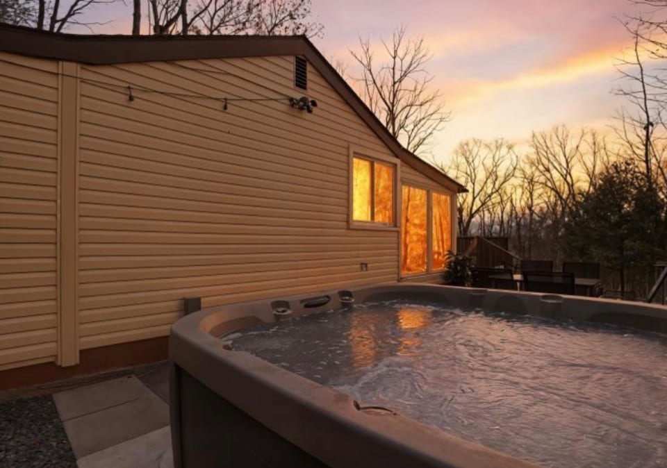 Secluded modern cabin retreat in the Pocono Mountains. Find your peaceful retreat just minutes from all the Poconos has to offer. Relax around the fire pit or venture out to one of the many local attractions. DOG FRIENDLY Cabin features 3 bedrooms on a 3.7 acre lot with spectacular view of Shawnee Mountain and a HOT TUB! Modern amenities include WiFi and Smart TV. Rustic charm with puzzles, games and outdoor space for you to disconnect. Enjoy full kitchen or dine out at our local restaurants.