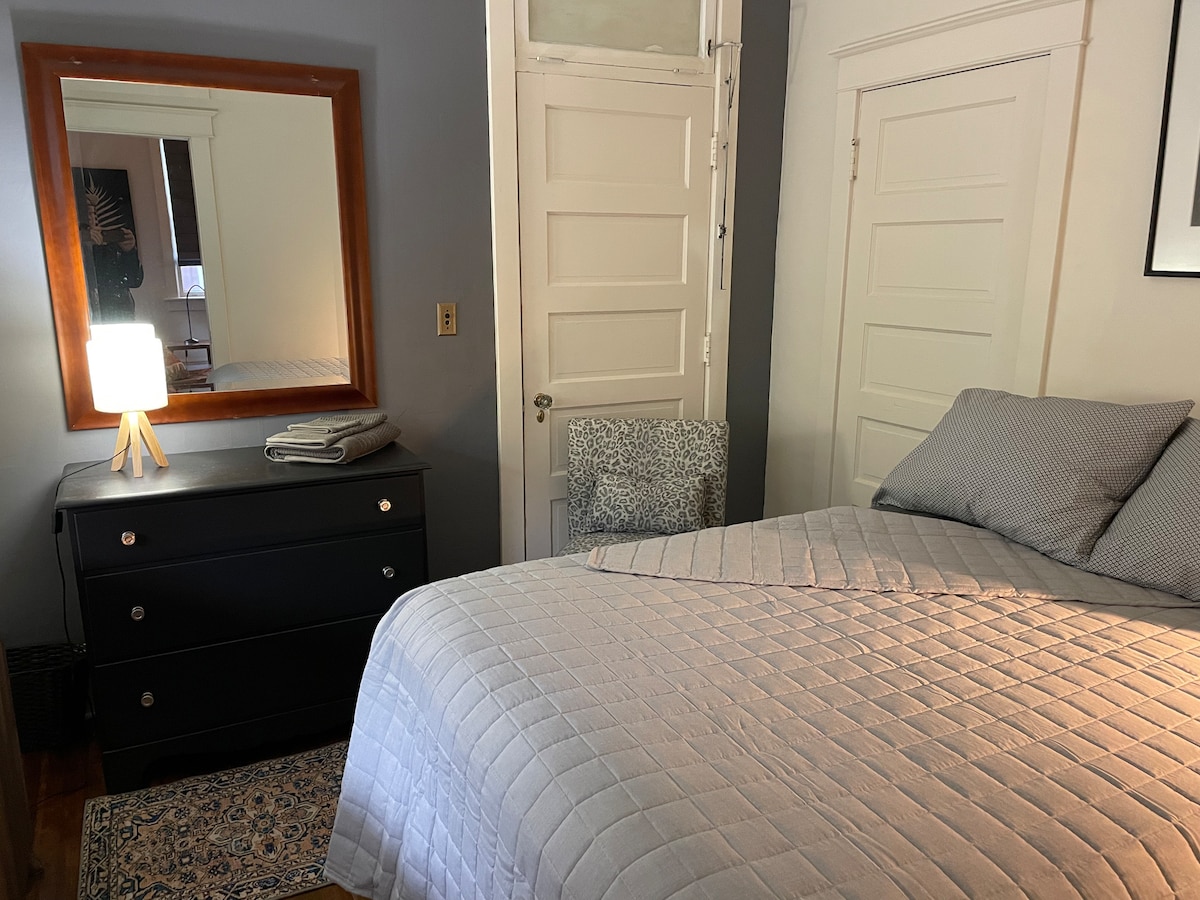 Perfect location for friends and family to walk, eat, drink, create, laugh, unwind and breathe. Sleeps 10 w/spacious rooms, fast Wi-Fi, board games, and dedicated Art Studio 4 bedrooms, full kitchen, dedicated workspace, soaking tub w/peaceful backyard space all in town. 3-Season Bonus! Cozy up on our enclosed porch with a glamping cot designed for 2 outdoor lovers. -Free parking 4 cars -Smart TV & streaming -Crib & family-friendly gear -5star Superhost, rapid replies