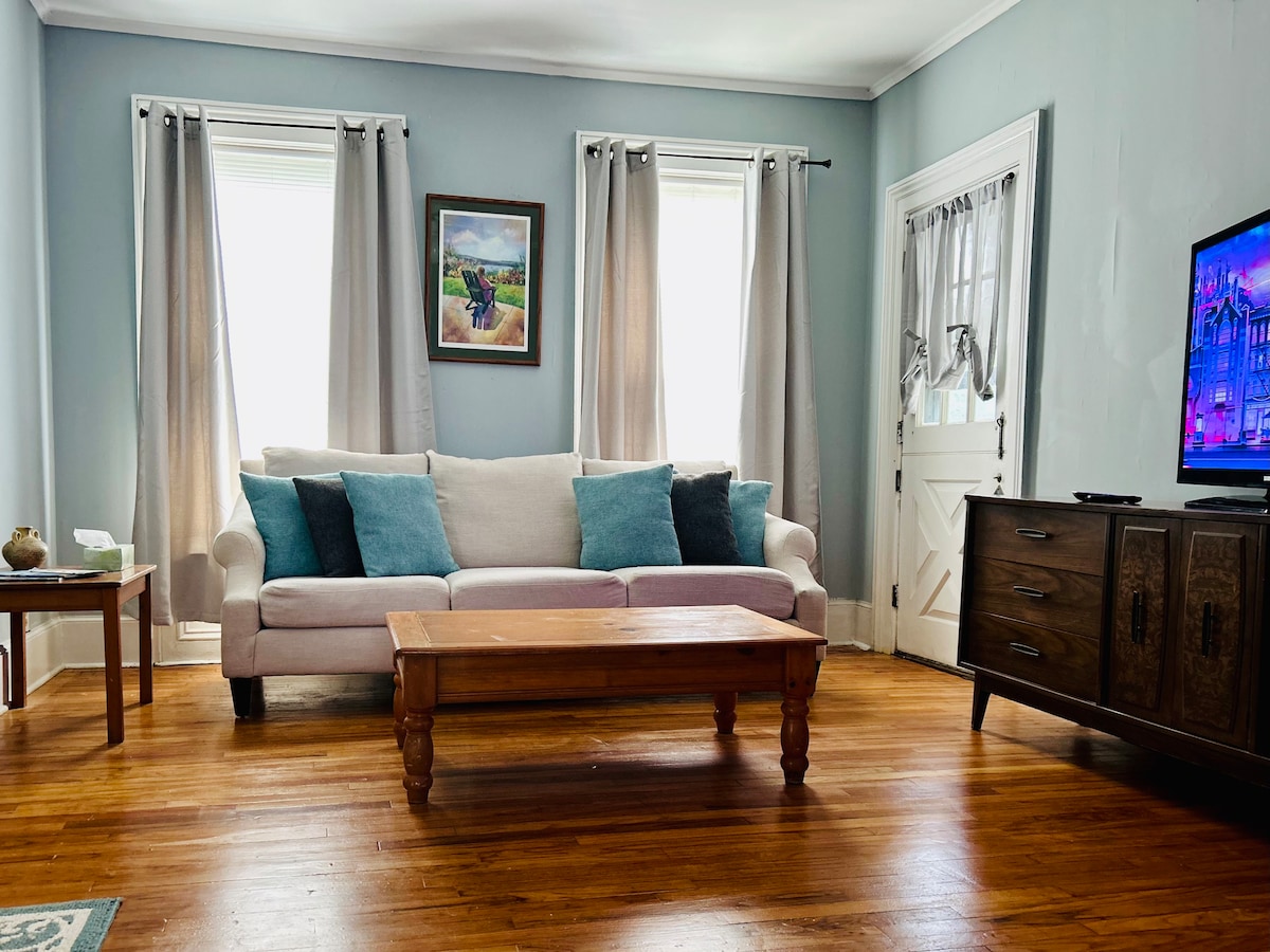 Cozy 2BR, 1BA home in a quiet Glens Falls neighborhood, steps from the Warren County Bike Trail and just 15 mins to Lake George. Features a full kitchen, comfortable living room with Roku TV, and Wi-Fi. Perfect for families or couples exploring the Adirondacks. Close to dining, hiking, beaches, skiing, snowboarding and Six Flags. A peaceful, well-equipped home base for your next upstate adventure!