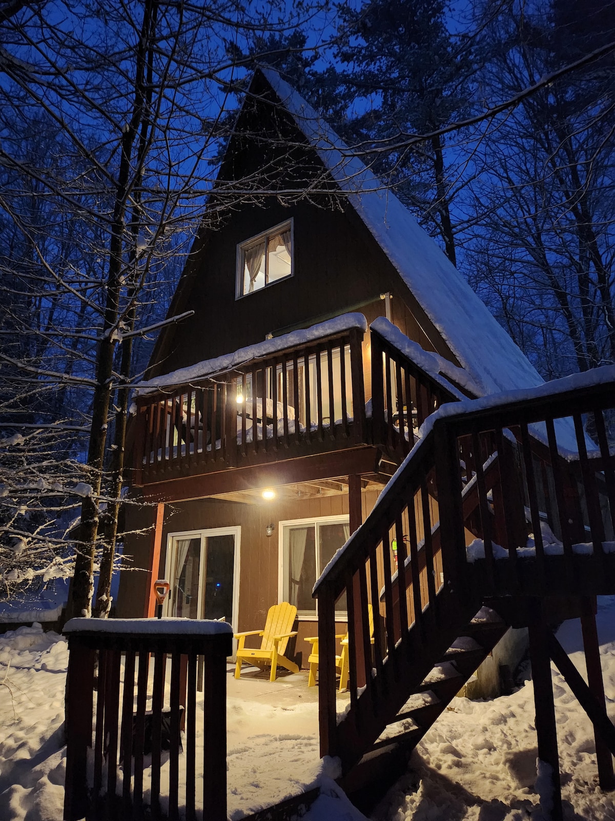ADK Cedar Chalet is a 715 sq ft A-Frame cabin nestled on 6 acres in the Adirondack mountains. This cozy retreat is the perfect year-round destination for those looking for a private getaway. We are a 15 minute ride to Gore Ski Mountain, a 25 minute ride to Lake George, a 50 minute ride to Saratoga Springs and minutes from local hiking trails, fishing holes, maple syrup farms and more!