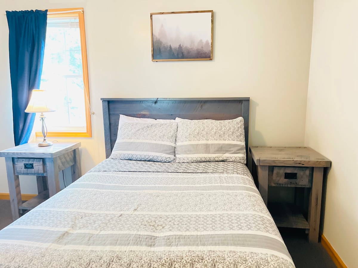 Private stylish cabin. Expanded and newly Renovated. AC WiFi. Fireplace. Heating System. Full Kitchen, and bathroom with shower. Roku. In ground Pool shared by 5 other cabins. All new Furniture and new Queen Bed. Mill Creek neighbors the property for Trout fishing. Minutes to great skiing at Gore Mt. Minutes to Lake George and minutes to other Lakes, and Whitewater rafting and hiking. Guests to bring their own soaps and towels. $75 Per Pet Fee must bring pet covers for couches & bed.