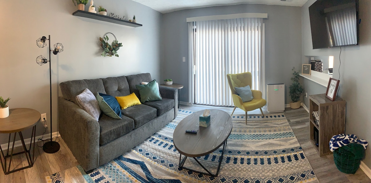 Newly Remodeled, Pet Friendly, King & Queen Beds, Washer&Dryer in unit, Smart TV's in every room, Alexa, Keyless Entry. For children: high chairs, Pack and Play's with thick mattresses, Air Mattress. 2 miles from I-75, Close to Kings Island, Miami Valley Gaming Casino, Flea Markets, Premium Outlet Mall, Centrally located between Dayton and Cincinnati, 30 minutes to Cincinnati Reds, Bengals, Dayton Dragons. Close to Lebanon Sports Complex & Warren County Sports Park