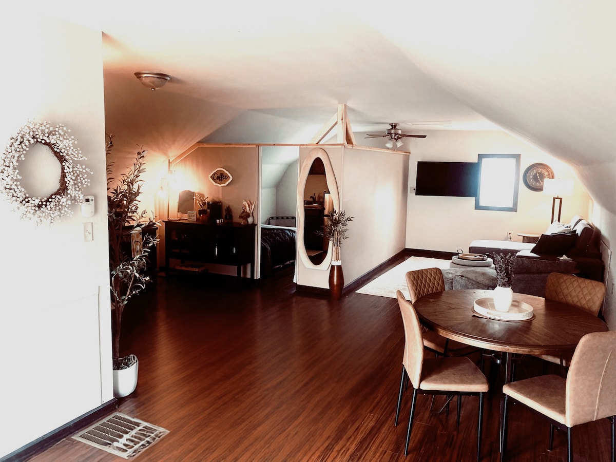 UPDATE: No additional cleaning fee! The Firefly Suite has been lovingly restored to its historic beauty. If you're looking for a little whimsy in your visit, this spacious two-bedroom suite offers the perfect getaway in Warren, PA. Centrally located, you'll find yourself within easy walking distance of downtown businesses and restaurants. We'll be adding additional photos of the kitchen and dining area shortly. There is also a 45" flat screen TV in the living room that is not pictured.