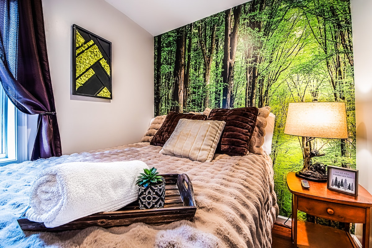Nestled in the Blue Ridge Mountains, a beautifully remodeled 2-bedroom second-story apartment awaits. This space has been thoughtfully designed with hikers in mind, to bring the beauty of the outdoors inside. The walls are adorned with outdoor-inspired décor, providing a rustic ambiance. The Historic Trout Building, a remarkable architectural gem constructed in 1900 by Isaac Trout. This building stands as one of Front Royal's historical landmarks for guests to embrace during their stay.