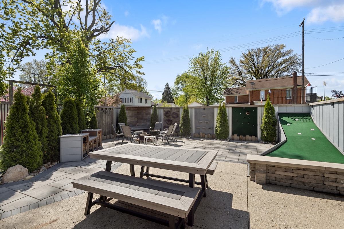 Highlights: ✔ Designer rehab in 2022 ✔ Sleeps 8 ✔ Outdoor firepit ✔ Relaxing back porch ✔ 5 min walk to Journeyman ✔ Easy 5-10 min walk to Three Oaks dining + shopping ✔ 8 min to wine tastings ✔ 10 min to New Buffalo, Union Pier, Sawyer ✔ 12 min to beach ✔ Gas BBQ grill ✔ Smart TVs & board games ✔ King bed in main bedroom ✔ Fabulous front foyer for wedding photos ✔ EV charger ✔ Luxury custom-designed home ✔ 3 vehicle parking ✔ Computer workstation ✔ High speed wifi ✔ Fully stocked