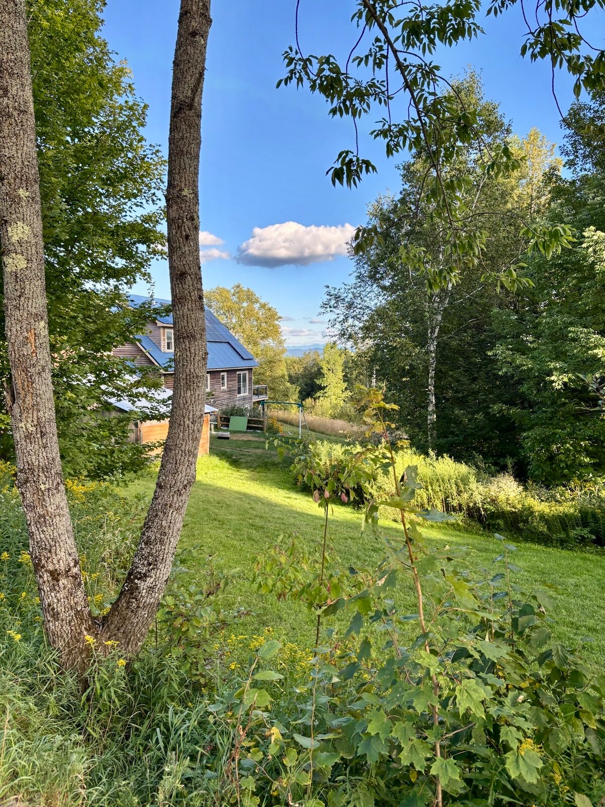 Welcome to our handcrafted log chalet tucked away in the Mad River Valley—our spacious, light-filled retreat, is the quintessential Vermont getaway. Featuring an open loft w/ queen bed, full bath w/ shower, fully equipped kitchen, full size sofa bed, and private workspace. Just a short walk to Blueberry Lake and minutes to Sugarbush, Mad River Glen, wedding venues, hiking, and biking. Ideal for ski trips, a couples cabin getaway, wedding guests, and close friends looking for adventure.