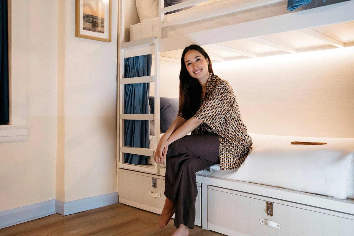 Experience privacy 1 minute from Bondi Beach in our Private Double Ensuite Loft, perfect for couples, solos or friends seeking a cosy getaway. Including a plush double bed, charging ports, sofa, tv, free wifi and storage, and a private space to relax.