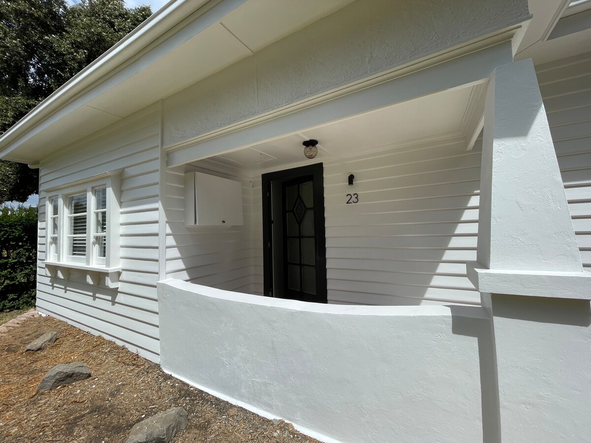 After a 2 year break we are back! A boutique style Studio with the luxury of a massage chair! Only minutes walk to surf beach, new cafe, fish&chips, shop and laundrette~20 mins walk main st shopping & restaurants~short drive whale watching platform & racecourse. A kitchenette, ensuite & private courtyard~separate entrance from free onsite car park~ Queen size bed+dbl sofa bed~sleeps up to a "cozy" 4. Ideal for singles, couples, small young families or girls weekend. Free breakfast & toiletries