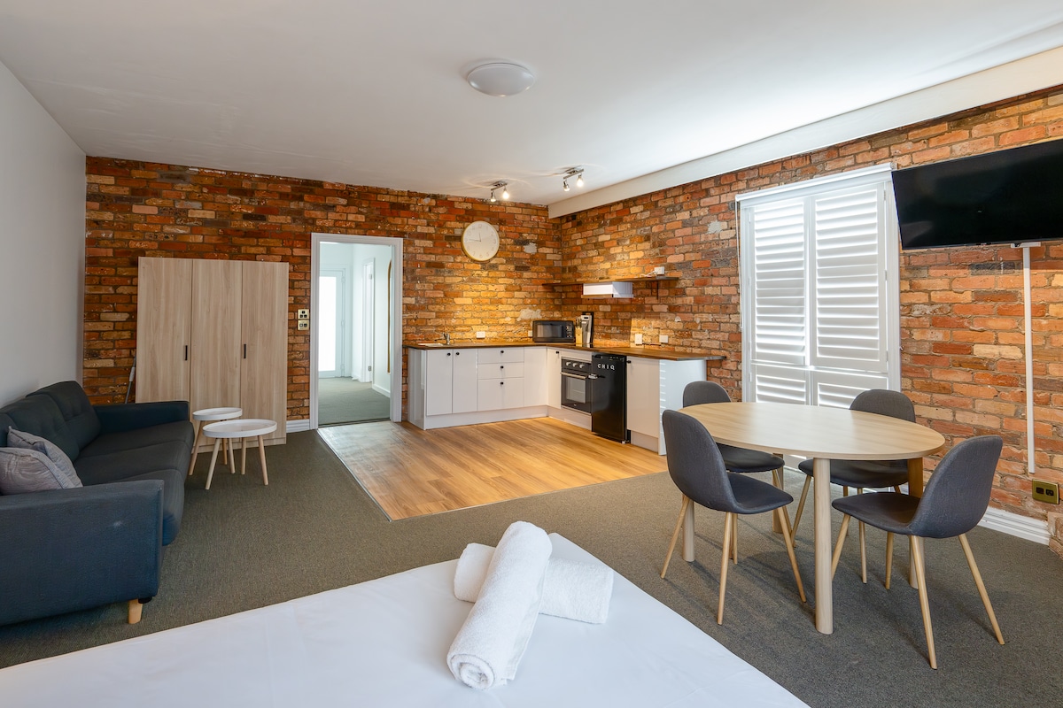 Located in a perfect central position, with boutique shops, cafes & restaurants just metres from your door. The suite contains a spacious living/ dining area with gas log fireplace, a fully equipped kitchen, a comfortable king size bed & bathroom with spa bath. Ideally suited for a couple however a sofa bed is available to accomodate extra guests if required. Free WiFi and parking available.