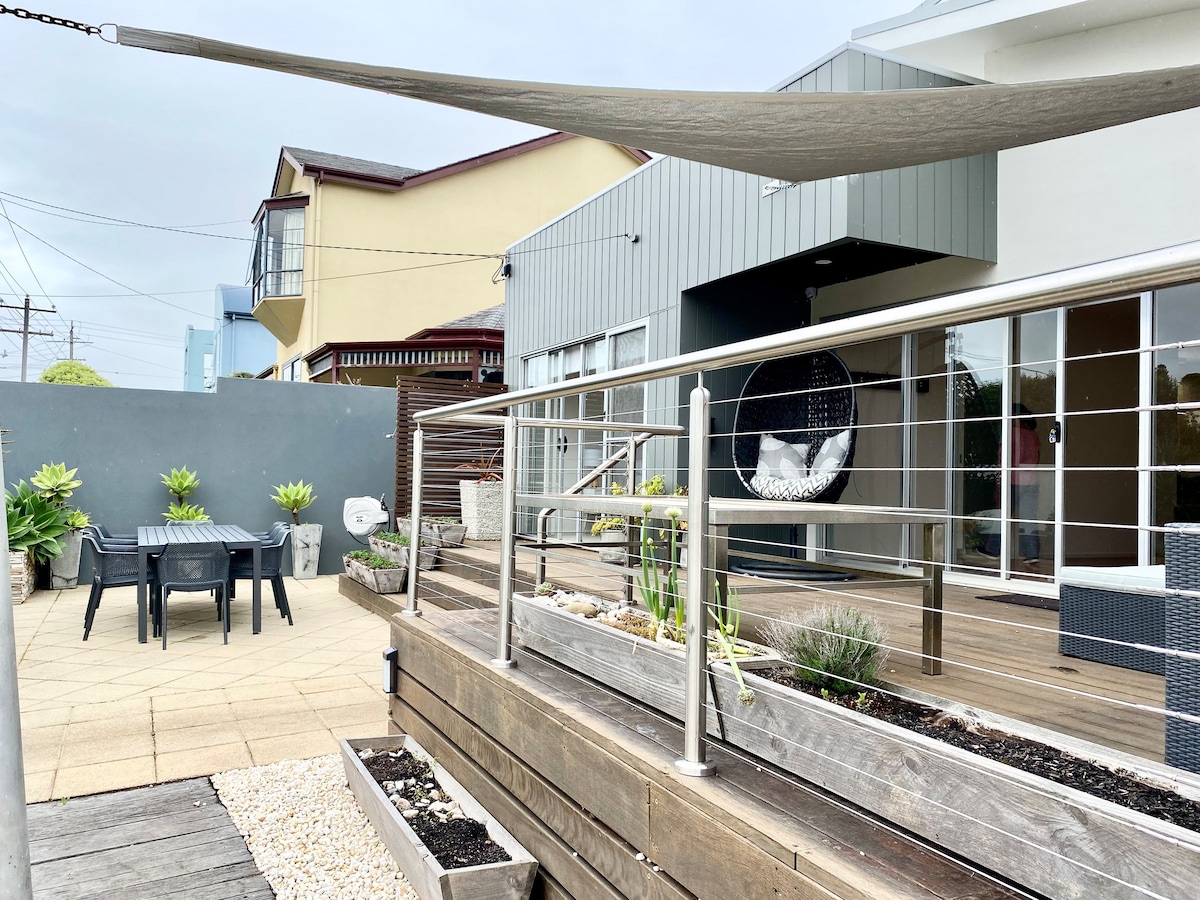 Amazing four bedroom two story spacious beachfront house with spectacular ocean views and only a 300 metre walk to beach Fantastic walking track on the beach promenade opposite house. 10-15 min walk to restaurants and main street. House is self contained with newly renovated full kitchen & laundry. Wi Fi & Netflix Four bedrooms, king bed , two queen beds & 2 singles, and 2 bathrooms, air conditioning & heating Large private backyard with BBQ and outdoor dining.