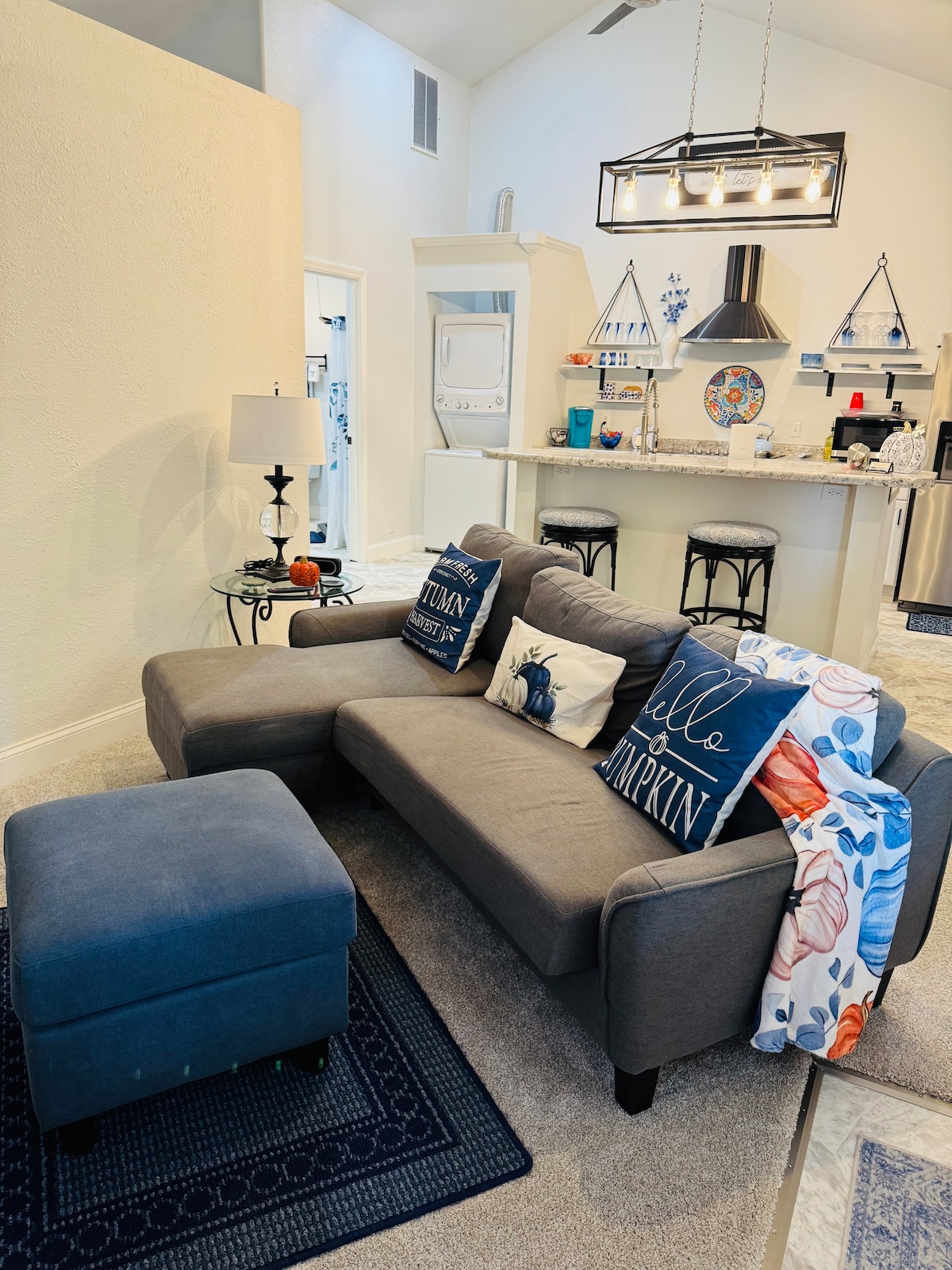 Welcome to our charming boho-inspired Grain Bin Cabin, the Highland is ideal for 2-3 adults or 2 adults and 2 smaller children. Upstairs, you'll find a comfortable king bed in the loft, while downstairs features a cozy futon in the main living space. The full kitchen is equipped with everything you need. Full Bath with a walk-in shower downstairs. Experience a serene countryside getaway with breathtaking sunsets and peaceful surroundings, just moments away from Versailles.