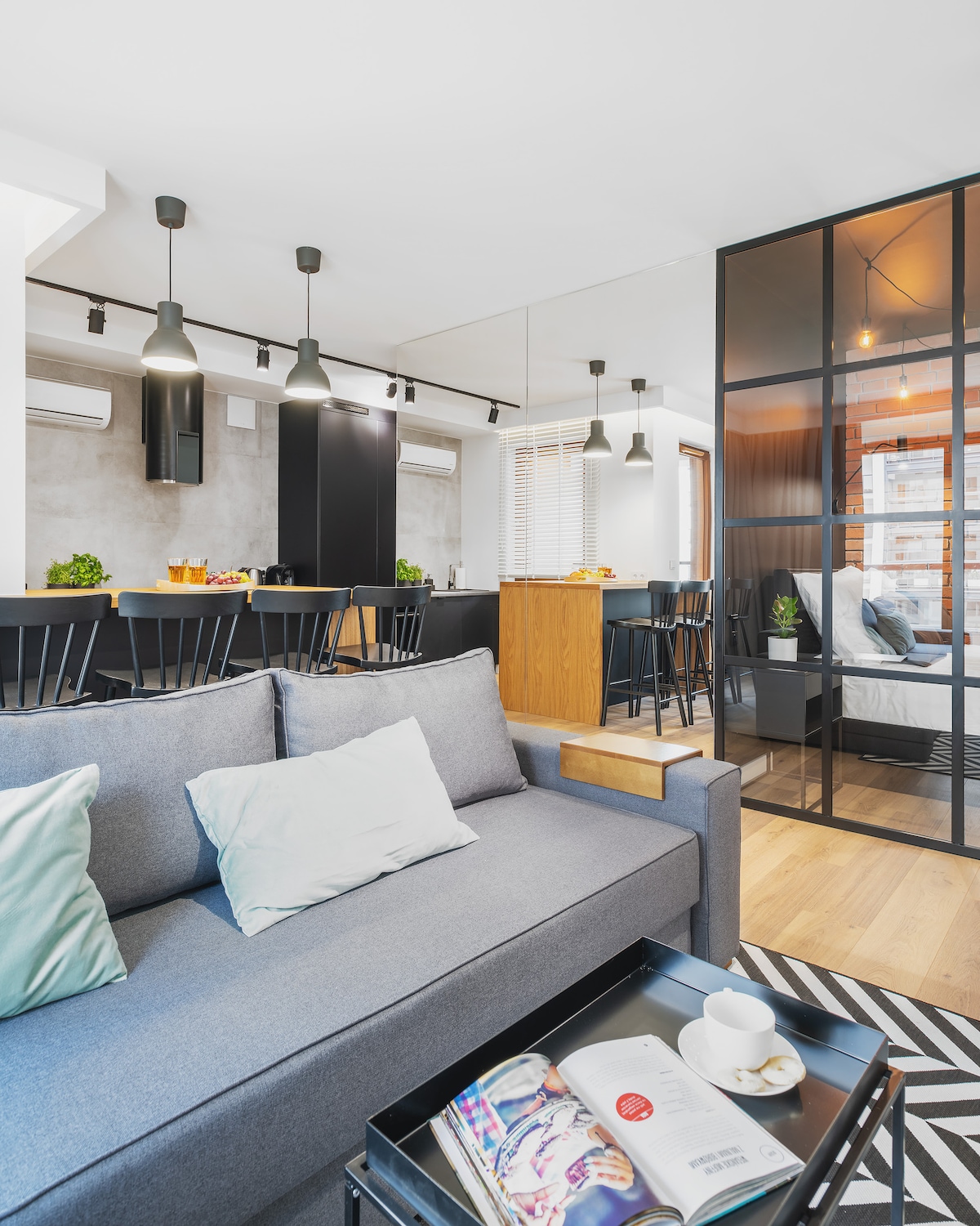 A luxurious loft-style apartment located in an over a hundred-year-old tenement house. Due to the extremely high ceilings and windows you can feel space and light. While designing the interior of our cosy accommodation, we tried to combine comfort with luxury. The bedroom has been separated from the living area, so up to 4 people can comfortably spend time here. The central location of this appartment is an excellent starting point for any excursions