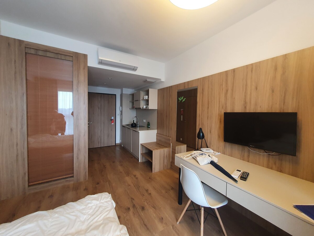 Design studio in strict Warsaw city centre, great panorama view. Fully equipped kitchen (cooker, microwave, big fridge with freezer); bathroom (bathtub, washing machine, iron, towels, shampoo); comfortable bed with linen, 600Mb wifi, cable TV and other Old Town and 23 museums, Central Railway Station - 20 min walk, Chopin Airport 25 min/taxi, Subway/buses/trams 3 min walk 24/7 check in, no additional charge. Close to 20+ restaurants, 2 grocery stores just by the door! Wheelchair friendly