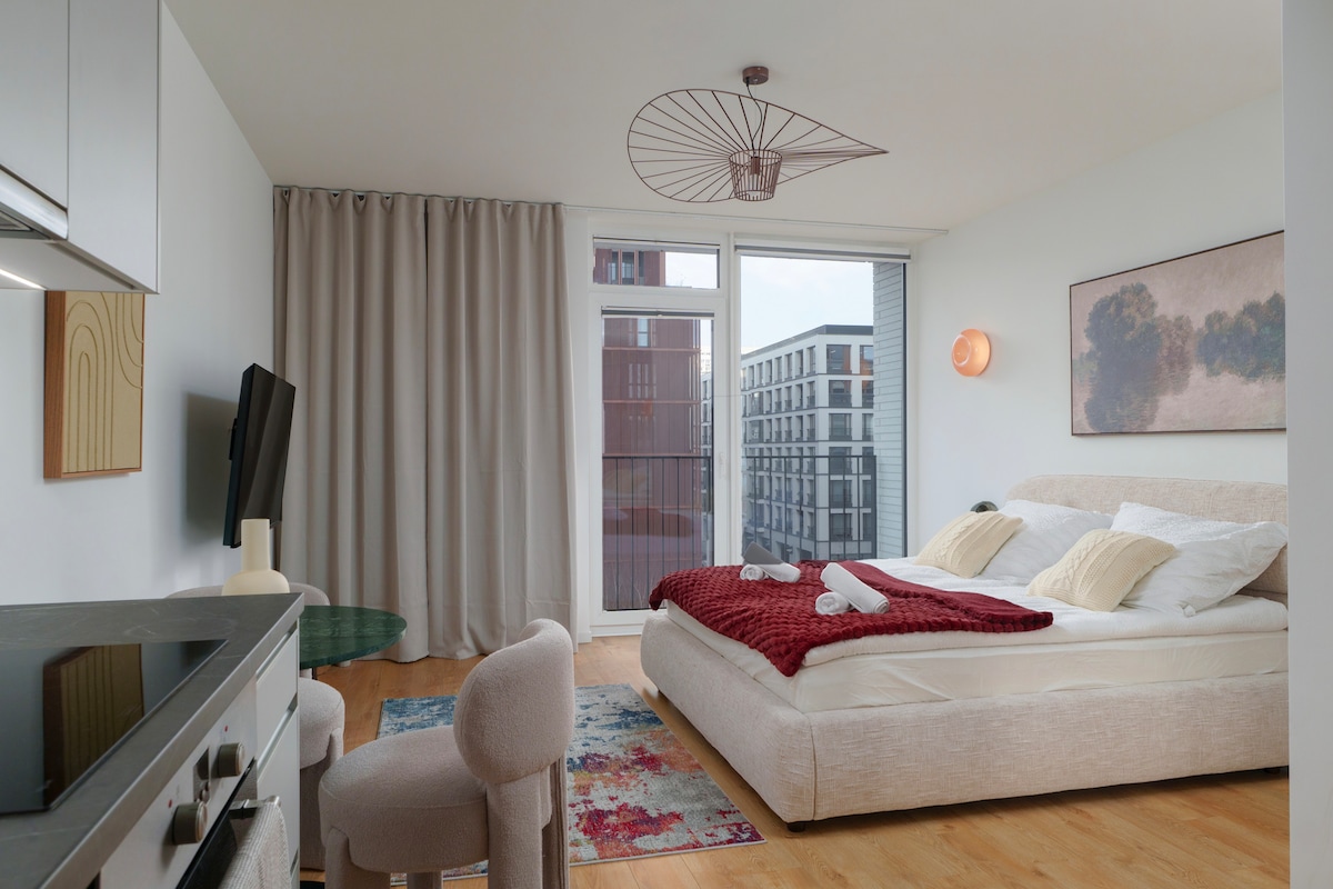 Located in one of Warsaw’s most prestigious modern districts, popular with professionals, expats, and guests who value style, comfort, and excellent dining nearby. The neighborhood offers a vibrant yet refined city lifestyle, with top restaurants, cafés, and bakeries just steps away, while remaining calm, safe, and residential. There are trams and metro nearby within 10 minutes walking distance.