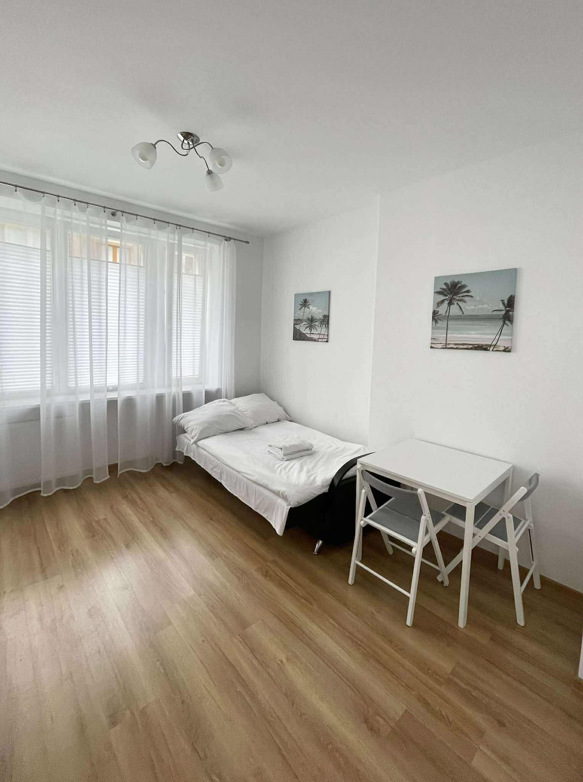 Słoneczne i ciche mieszkanie urządzone w stylu skandynawskim, z dbałością o pełny komfort i wygodę użytkowników. Zamykana sypialnia, kuchnia i przestrzeń wypoczynkowa w pełni wyposażone, do wyłącznej dyspozycji gości. Miejsce do pracy. Czysto i przytulnie. Quiet and comfy place with Scandinavian spirit. The apartment consists of 1 separate bedroom, a living room with working desk,a fully equipped kitchen with a fridge and a stovetop, and 1 bathroom with a shower, washing mashine and hairdryer.