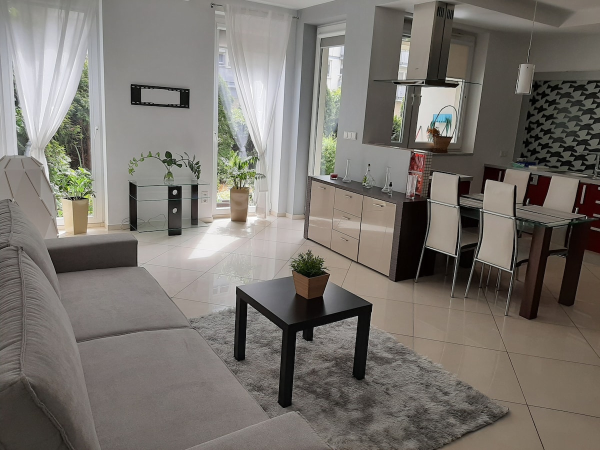 In the Mokotów district of Warsaw, walking distance to Służew subway station (2 min).The apartment features a tarrace, 2 spacious bedrooms, a dining room and well equipped kitchen, WiFi. There are 2 free parking places. The neighborhood is very calm and quiet, located in villas district. Food shops within 2 minutes walking distance (Mall center Land). Location is close to the city center (15 minutes by subway). Królikarnia and Royal Wilanów palaces are quickly accessible within public transport.