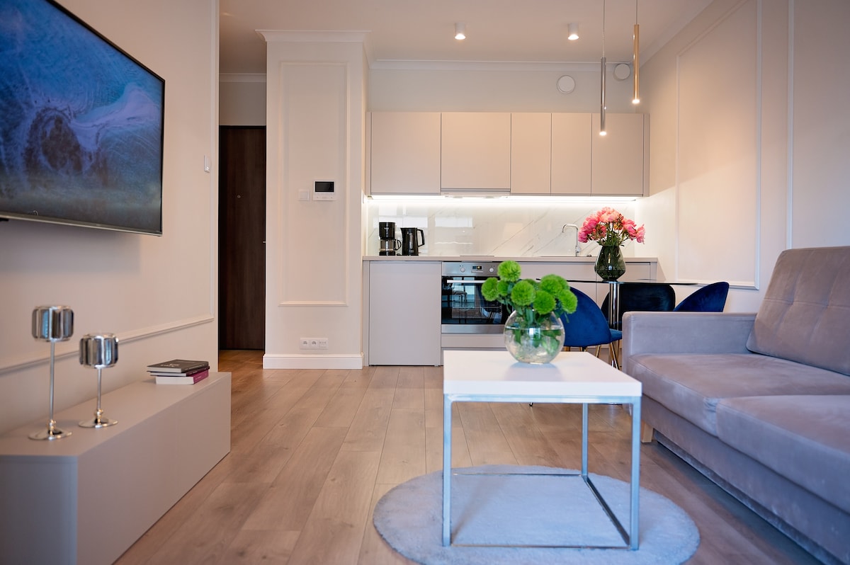 AmSuites - Discover a unique blend of luxury, comfort, and design in this stylish city apartment - perfect for a romantic escape, remote work, or a relaxing city break. ✨ Highlights: - 🧖♂️ Year-round heated Jacuzzi on a 55m² private rooftop terrace - 📺 55” Smart TV - ❄️ Air conditioning, high-speed Wi-Fi & full kitchen - 🚗 Secure garage parking included Soak under the stars, unwind in serene comfort, and make your Warsaw stay unforgettable.