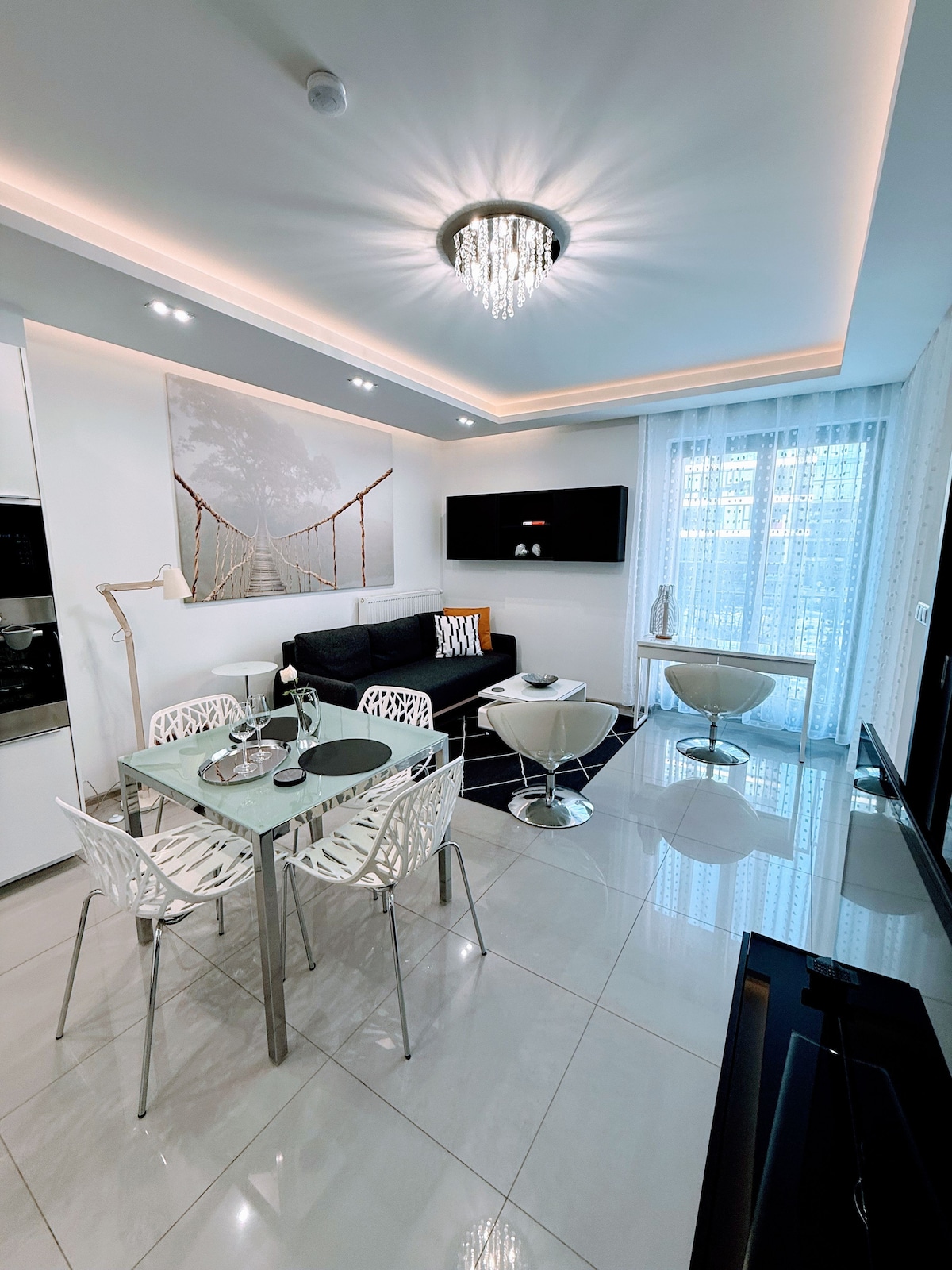 Nowoczesny apartament z prywatnym tarasem i całorocznym jacuzzi (do 40°C). 🫧 * Prywatne Jacuzzi - obowiązuje dodatkowa opłata: 150 zł (wynajmy do 3 nocy)/200 zł (wynajmy na 4+ noce) za jacuzzi. Jest możliwość wynająć bez jacuzzi. * Taras o powierzchni 25 m² * Siłownia i sauna w części wspólnej * Smart TV 70" i PS4 * Bezpłatny parking w garażu podziemnym * Pełna kuchnia i szybkie Wi-Fi Uwaga: - Zakaz przebywania zwierząt, palenia w mieszkaniu i organizowania imprez.