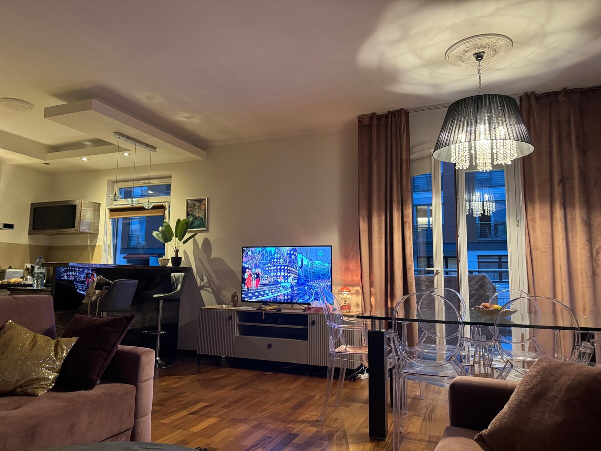 A brand-new, luxurious 44m² apartment in the heart of Warsaw, Emilii Plater 55, next to lively Plac Grzybowski. The living room has a fashionable sofa and 65" TV. The modern kitchen is fully equipped: fridge, oven, microwave, dishwasher, and coffee makers. The bedroom features a king-size bed (160x200), electric standing desk, and monitor. A/C, washer-dryer, and top location near Złote Tarasy, metro, cafés, and restaurants make it ideal for business or leisure. Safe and vibrant area!