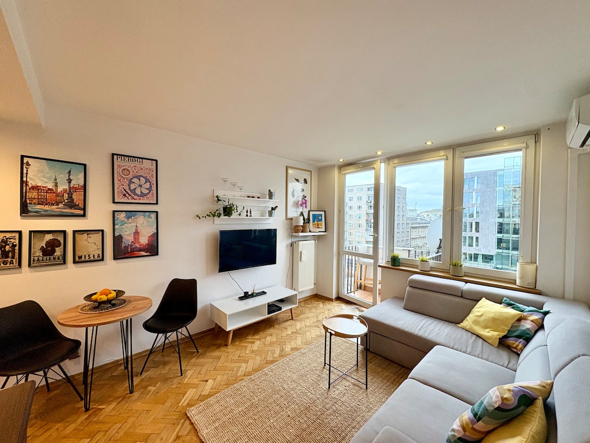 Klimatyzowany dwupokojowy apartament, w którym się zatrzymasz, mieści się w samym sercu Warszawy. Jest idealnie położony - blisko dworca Warszawa Centralna, z łatwym dojazdem na lotnisko. W kilka minut dojdziesz do przystanku autobusowego, tramwajowego i stacja metra. Centralne położenie gwarantuje łatwy dojazd do atrakcji turystycznych miasta. Dwupokojowy apartament jest świeżo wyremontowany i komfortowo wyposażony we wszystko, czego możesz potrzebować podczas swojego pobytu. Internet 500Mbps.