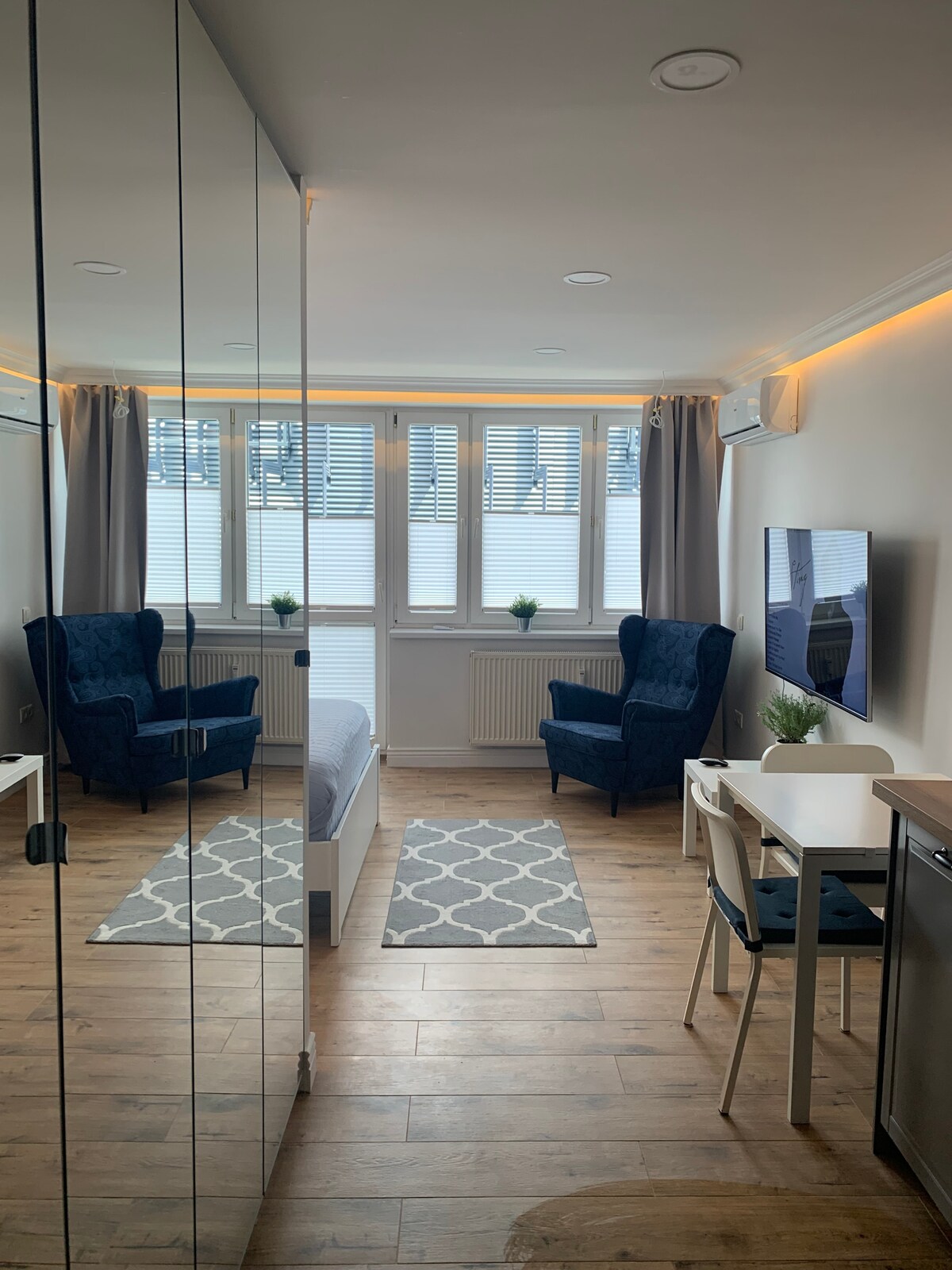 Przytulny apartament zlokalizowany w centrum Warszawy, na cichej ulicy. Tuż obok tętniące życiem popularne restauracje, bary i kawiarnie. Idealny dla par oraz turystów biznesowych dzięki swojej centralnej lokalizacji. Dobrze zaprojektowana przestrzeń zapewnia komfortowy pobyt dla dwóch osób. Studio jest w pełni wyposażone: internet, TV, pralka, suszarka stojąca, ręczniki i szeroki wybór kosmetyków - wszystko dostępne dla Ciebie.