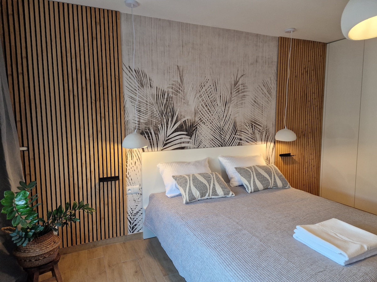 Komfortowy, w pełni wyposażony apartament w nowym budynku. Salon z otwartą kuchnią podzielony na część jadalną i wypoczynkową. W sypialni znajduje się duże łóżko i przestronna szafa. Jest także garderoba jako dodatkowe miejsce do przechowywania. W okolicy znajdują się sklepy, restauracje i kawiarnie Wyposażenie: klimatyzacja, ekspres, czajnik, żelazko, deska do prasowania, pralka Dojazd z Lotniska Chopina 20 min taxi 50 min komunikacja z Lotniska Modlin 50 min taxi 120 min komunikacja