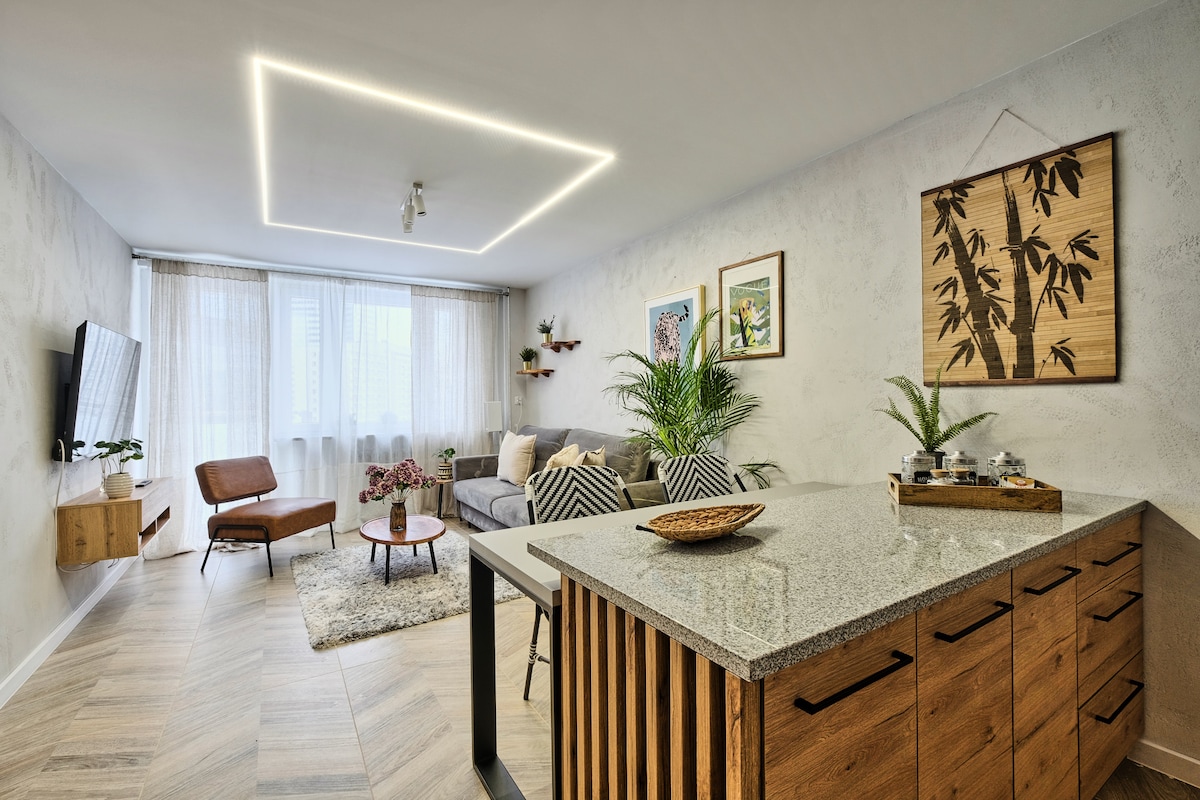 This new apartment, renovated with attention to detail, ensures comfortable work and rest. A cozy, fully equipped kitchen comforts preparing something to eat or cook with dining table for 2. There is a comfortable sofa with TV and Internet access, and Netflix. The apartment also has a large, comfortable bed, a dedicated place for remote work and wardrobe. The bathroom has a large shower cabin and washing machine. Relaxing on the large balcony, which overlooks the horse racing track.