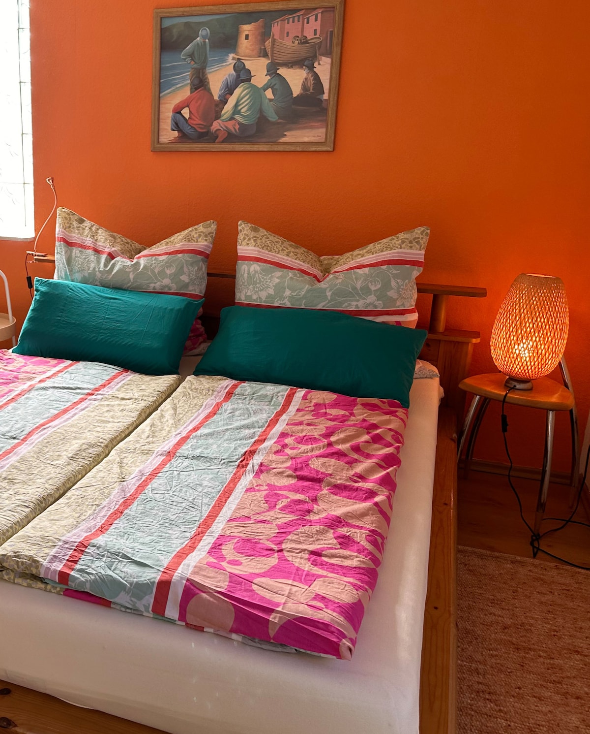 In unserer liebevoll gestalteten Ferienwohnung erwartet sie eine Gemütlichkeit die einlädt zu verweilen. Die großzügig geschnittene 2 Zimmer Wohnung lässt keine Wünsche offen & bietet alles was man für eine gute Zeit braucht. Die Küche ist vollständig ausgestattet. Im schönen geräumigen Wohnzimmer steht eine gemütliche Couch mit Schlaffunktion. Das Schlafzimmer ist mit einem gemütlichen Doppelbett ausgestattet in dem man tolle Träume genießen kann. Bettwäsche & Handtücher können gebucht werden.