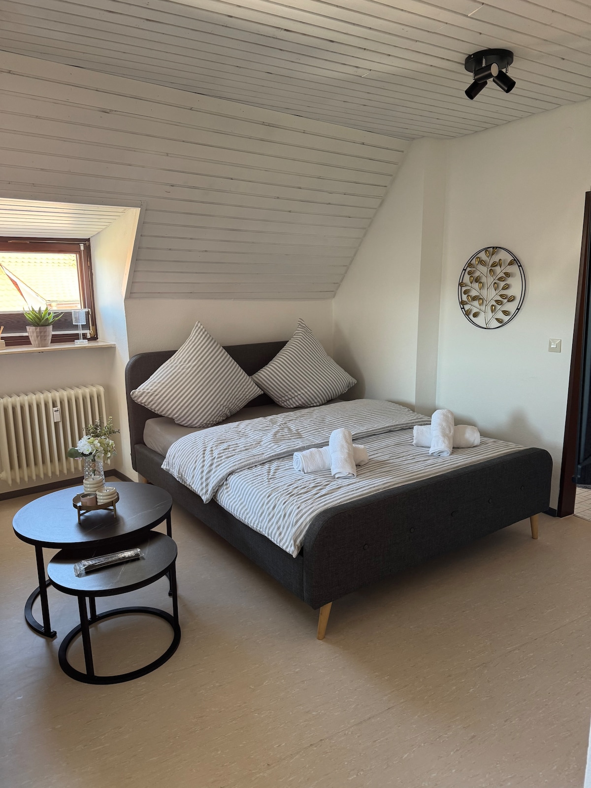 A quiet ground-floor apartment in a large detached house with seperate entrance and private parking. A large studio with double-bed , sofa , armchairs, TV , WIFI, a selection of DVDs and books plus a small work-table. Seperate kitchen and bathroom. A high-chair and baby-bed are available on request. An Italian restaurant , bakery, pharmacy and supermarket are within walking distance. A men's bicycle is available to rent. Local bus service to Biberach (Line 2)