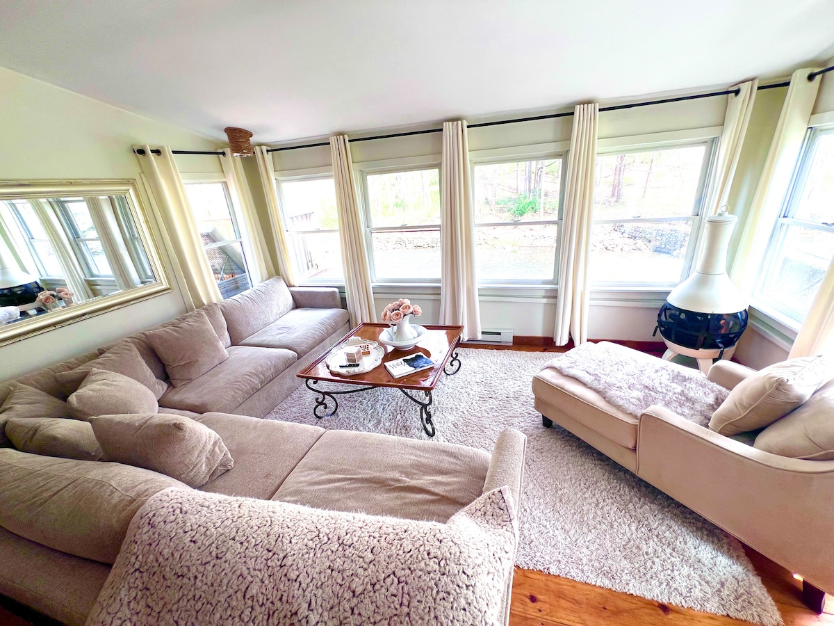 Ultra Chic Cottage set high above Greenwood Lake with Private beach and lake front community access. Minutes away from Mountain Creek Ski Resort, Spa & Water park, Mt. Peter Ski & Tubing, Warwick creameries, breweries & vineyards & apple picking. 1 BR, 1 Bath, play/office/common room. Huge wrap around fenced in deck with Mid century modern fireplace allows for scenic dining, lounging and around the fire gatherings. #LakeViewCottage_GWL Town of Warwick Short Term Rental Permit #P25-0245