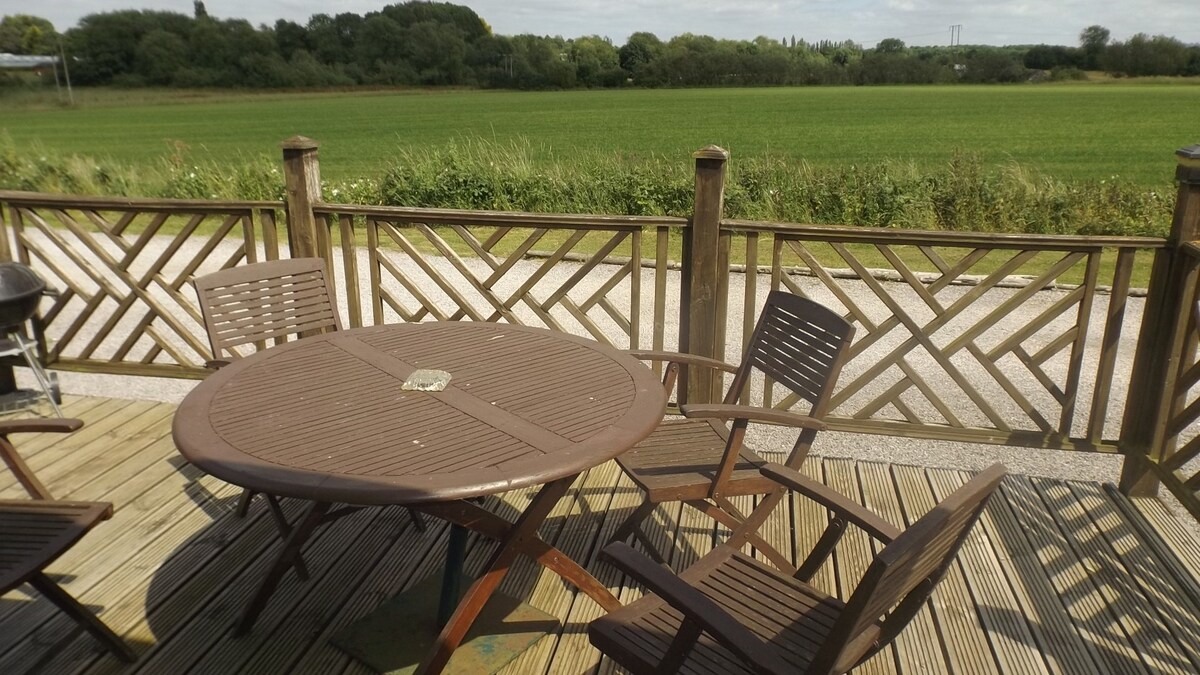 A front line, fully equipped wooden lodge, with panoramic river views. A bird watchers and fisherman's paradise, the south facing glass panelled deck with its patio furniture is a perfect place to admire the view. It has a large open-plan lounge, dining area and kitchen with views across the river. Has 2 bedrooms and 2 bathrooms, a pull-out sofa bed in the lounge. It is equipped with all linen and towels, hairdryer, iron and ironing board. Approximately 1 mile from Stratford town center.