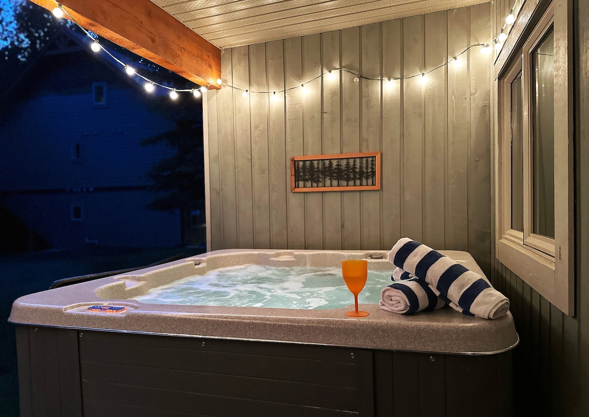 Welcome to The Canadiana Cabin! 🇨🇦 Situated on the ski hill in the coveted Sullivan Stone (#1 for ski in/ski out in Kimberley) this beautifully appointed townhouse (#30) is ready for adventure all year long. Private hot tub and parking. Live like a Canadian Eh! 🇨🇦 Uniquely appointed for a one of a kind experience. The spacious open concept living, dining, and kitchen is the perfect place to cuddle up in front of the fire while reminiscing about the fun from a day of golf, skiing or the trails.